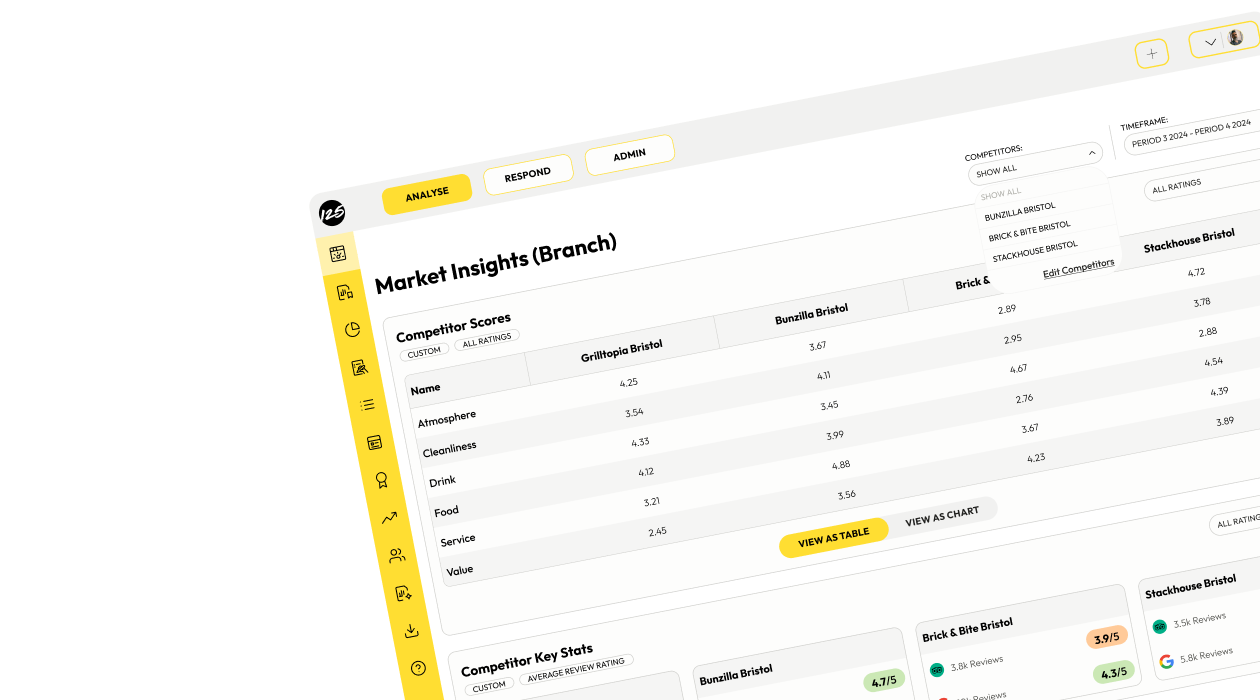 Compare your social reputation and sentiment analysis against 3 local competitors for every venue. Track performance, improve ratings and gather insight on your local competitors performance to leverage your business performance.